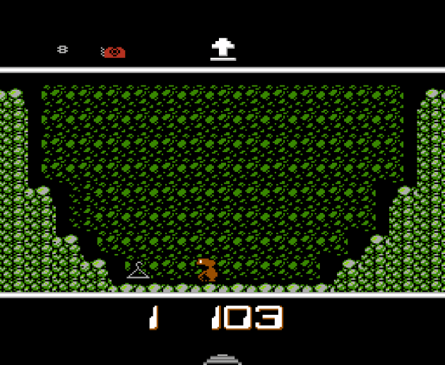 It’s literally the same game with bland NES graphics. The uninspired gameplay of the original is here in all its insufferable glory. Walk around as the adorable little alien, picking up delicious Reese’s Piecesâ„¢ The Official Candy of E.T.â„¢ while avoiding the FBI agent and the scientist. Fall into pits, deliberately or accidentally, to find the three components of the galactic phone. Walk around hoping to stumble upon the context sensitive spot that allows you to phone home, then run to the spot where your ship lands. Did they fix anything? Well, the pits are more visible, though I had multiple instances where I switched screens only to fall immediately into a pit. The only other major quality of life improvement seems to be a high score table that was pretty dang glitchy.