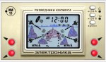 This cold war era clone of Nintendo’s famous Egg (which itself was reskinned as Mickey Mouse, or was it vice-versa?) is one I couldn’t make any progress on. When two missiles would fire close to the same time, as soon as I stopped one, the other would immediately cause a miss. I thought “well, maybe I’m misjudging which is the closest one.” But, when I went against my instincts, I just suffered a miss faster. This was one of the few times where I drafted my family to attempt to play the game while I watched. They had the same thing happen, where even quick reflexes couldn’t possibly stop a miss from happening. I don’t recall every USSR clone of Egg being impossible to play, but this one sure seems like it is.