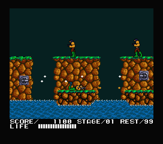 I assume that’s why they used third person areas instead of top-down in the first place. How do you stand out in a crowded field in 1987? Mix genres. Side scrollers are popular, and top-down shooters are. Why not do both? Great idea, but top-down is too commonplace, from Front Line to Commando to Ikari Warriors. Hell, Ikari Warriors’ sequel, Victory Road, came out in 1986. You don’t want people to think you’re playing follow the leader with SNK or Capcom, do you? So instead, you mix a side-scroller with unique third-person levels that shift the focus from run & gun platforming to intense bullet-dodging in a tight space, but in a way that retains the acrobatic movement and jumping from the side-scrolling levels. Neat. Novel. Original. Tantalizing. And ALL YOURS. Now you’re the one doing the innovating! Anyone that follows is eating your dust, not the other way around. So, why move away from that? I honestly don’t know. Maybe they got bad focus testing or early reviews specifically on the third-person stages. I hope that’s not it. If you’re a game critic or participated in a focus group and sh*t on the base levels in Contra, thanks so much for ruining the sequel. You’re a bad person, and you’re going to gaming hell, where you will be forced to play Super Contra. I kid, because it’s Konami’s fault. What a truly stupid decision.