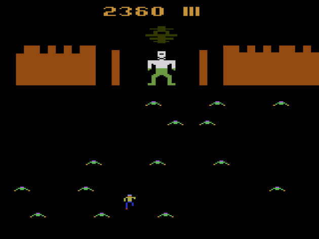 This isn’t a real screenshot of Venture. The Atari 2600 port of Venture uses flicker, and it’s one of those games where individual screenshots don’t make any sense. I had to sort of stitch multiple captures together for this to work. Anyway, there’s a few changes from the arcade version, like the moving walls in this one being lethal to the touch. That’s not from the arcade game. Which, frankly, isn’t as good as I originally believed, either.