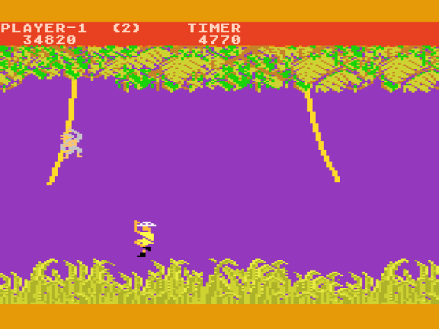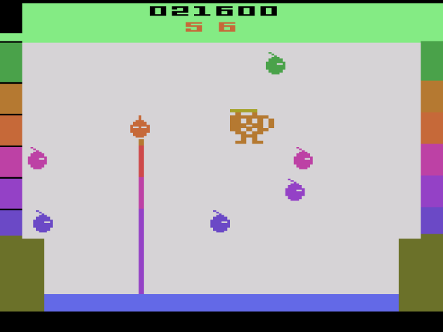 Junior’s VCS conversion is one of the worst on the Atari 2600. Yes, this is another example of an unreasonable time crunch, but unlike Garry Kitchen’s Donkey Kong, this one does feel like a knock-off instead of an officially-sanctioned port. The vine climbing mechanics seem close enough at first. Climb faster when holding two vines at once, then slide down a vine faster using only one vine. Great! It’s there! Well, in the first stage. In the second stage, apparently they forgot to program in the “move faster going down on one vine” part. Also, there’s no fruit, meaning no way to kill enemies, meaning this is purely an avoider-type game. It would be like doing the original Donkey Kong without the hammer. You HAVE to have that in the game, or it’s not Donkey Kong. And you have to have the fruit, or it’s not DK Jr. Even the Game & Watch had them, but this doesn’t? Are you kidding me?