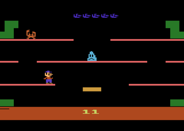 The bumping physics are the worst I’ve ever seen in any Mario Bros. port, including the Atari 2600 version. The VCS version has no movement when you bump, but at least bumping fundamentally works and is predictable. In this build, sometimes the enemies fly the wrong direction. Sometimes I’d bump right under an enemy, even the non-bouncing ones, and nothing would happen. And, when I say “nothing would happen” I mean NOTHING! Not even the graphics of the floor curling up. Mario Bros. 5200 feels like an early beta build. The flies are the worst. They seem to have a very small collision box when you go to bump them from underneath, and a small window of when you actually can, regardless of whether they appear to have their body planted on the platform or not. Had the Atari 5200 been more popular, I could actually see a scenario where this game takes its place alongside E.T. and Pac-Man as a commonly-cited cause of the 1983 video game crash. Because this, ladies and gentlemen, is as bad as it gets. One of the worst arcade ports I’ve ever seen. Absolutely horrible and a genuine contender for the worst video game ever made.