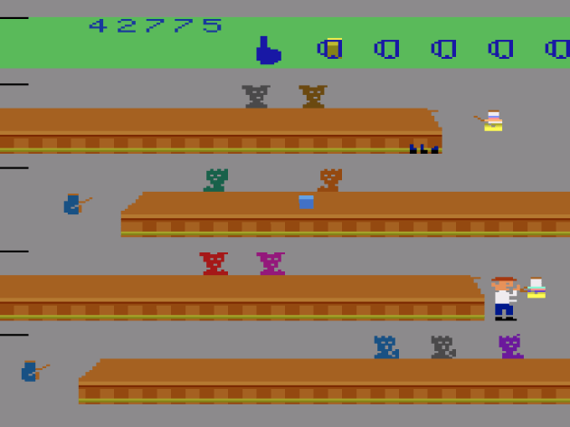 It ain’t much to look at, but this is pretty accurate. I just don’t happen to like Tapper at all. Also, I’m not entirely sure why the game is giving you the finger up there in the scoreboard, but it’s clearly, no doubt about it, flipping the bird.