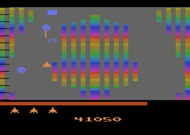 It’s fitting the ship looks sort of like the Loch Ness Monster, because this is a rare sighting indeed: a really good arcade conversion on the Atari 2600 that doesn’t suffer from the usual technical hang-ups. No flicker. No slowdown. Decent sound design. I’m truly impressed.