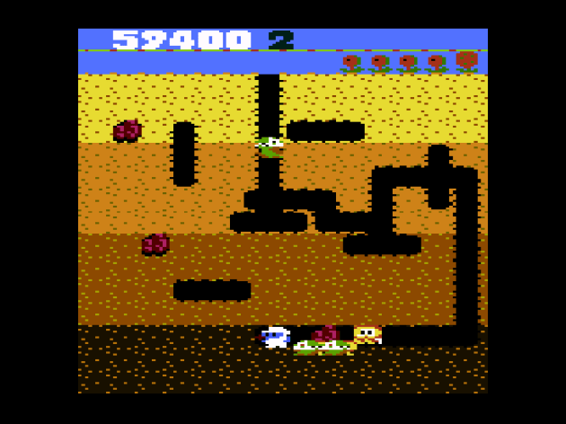 I think this was the most enemies I’ve ever dropped a single bolder on in any Dig Dug. I literally cheered!