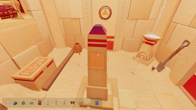 So, let’s get to the meat of the review: the interface. You move with the arrow keys on a keyboard, then grab and examine things with a mouse. The hypothetical advantage of digital rooms is, unlike real ones, you can make a mess of the room if you wish. At least without having to calculate how much you have to tip the attendees. Of course, when you smash pots, they break into several pieces that don’t do the video game thing and fade into the ether. You have to pick them up and manually dispose of them. In fact, tons of things that have nothing to do with the solution (known as red herrings to the Escape Room community) are in every room. Helpfully, the stuff you actually need is marked as such when you examine them. If you think that’s too easy, you can disable it in the options. Escape Simulator is surprisingly flexible. I just wish I could dump items faster. When you collect garbage, you have to literally place it in a garbage can to dump it from the inventory. Or, you can drop it on the floor, if you’re a total slob. (clears throat)