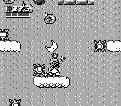 And where the hell are the traditional Castlevania subweapons? There’s no axe, knife, boomerang, or holy water. Don’t tell me the Game Boy couldn’t handle them, because they were in the previous Game Boy title (depending on which region you played). Well, their sprites are in this game, but not as items you use. Instead, Legends has hidden them as magical trinkets, one per stage, and if you find all five, you get the fifth subweapon. I should note that the way they’re hidden isn’t very satisfying, as each stage has a few forks in the road, and the hidden item is just in one of the forks. There’s no way to logic out which one. Presumably this whole idea is in there to add replay value, but it’s not creative. I would have rather hidden them in walls along a strictly linear route that was more optimized.