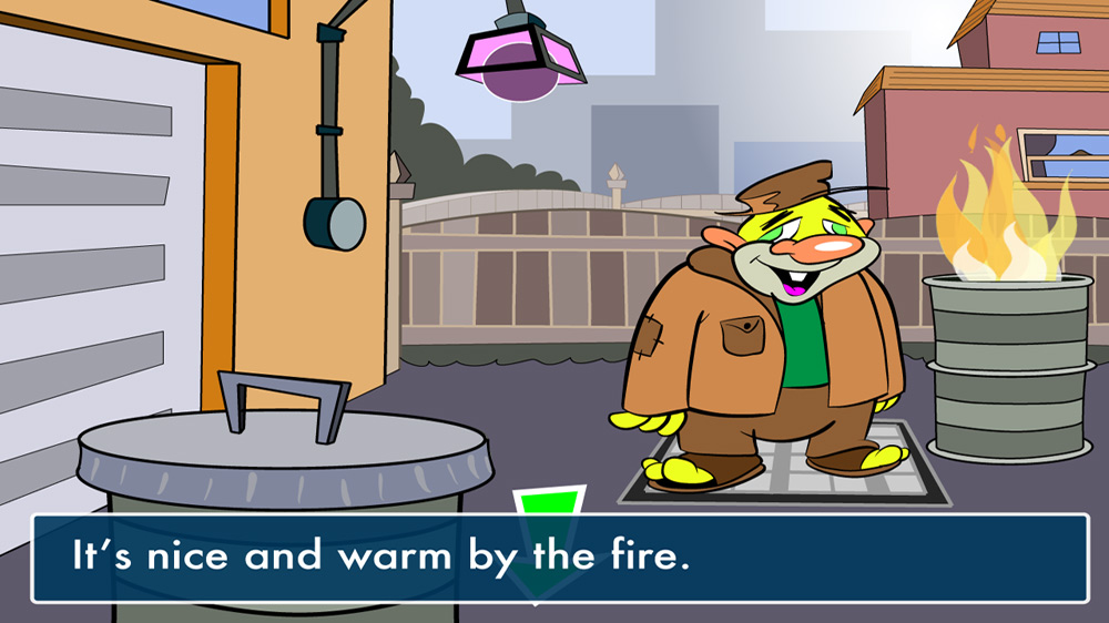 When I hear the term “Point & Click Adventure” it typically stimulates in me the same response as the term “Urinary Tract Infection.” And when I hear the term “Hip-Hop” it usually causes my own stomach to digest and barf itself up. So a game that purports to combine hip-hop culture with point & click adventures ranks right up there on the “things I’ve feared” list with “AIDS going airborne” or “Joel Schumacher is doing another Batman film.” But it suckered me into buying it because the art style reminded me of a John Kricfalusi cartoon, and I’m a sucker for that kind of stuff.