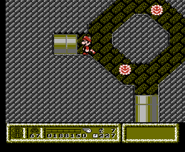 But that kind of head-scratching design is all over Super Mario Bros. 3. Even in levels that are fun to explore. You’ll notice that I didn’t say the structures themselves are stupid or anything because I’m not sh*ting on them. Their shapes are perfectly logical platforming game layouts. Good enemy placement on the inside. Not so much the roofs, which are, you know, the parts you have to actually walk across to get to the end of the stage, which is right there past the second structure. Hell, the second one didn’t even have a single enemy on its roof. But I think the little jumping flames inside the structures are quality enemies and a credible threat to Mario. There’s just not a good reason to go inside of them. This could have easily been fixed by creating some kind of circumstance that necessitates going through structures. A key. A switch. Anything besides a nominal reward with no risk/reward balance consideration.