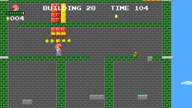 Well, Demolition Crew is a tribute to a 1985 NES black box title. But actually, the game it’s a homage of is Ice Climber. The jumping physics based sometimes around breaking bricks above your head and the vertical climbing sort of make it a dead giveaway. I fucking hated Ice Climber. It’s probably the worst game Nintendo ever made. And I’ve had three words in italics this paragraph. Eh, fuck it’s, let’s make it four.
