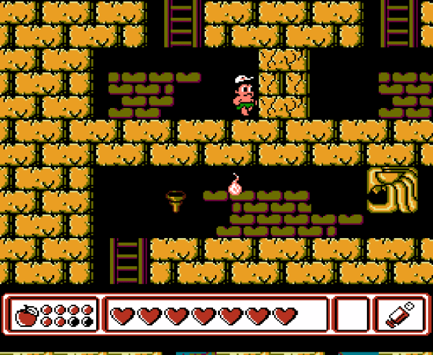 Now, that bomb is relatively expensive at five hearts and it only does as much damage as the fireball your whip throws, which is half-as-strong as a direct hit with the whip. So it’s not like you can just plow through levels with it because it can’t one-shot anything stronger than a bat. But the bats were one of the main challenge elements, and they’re rendered completely toothless by this upgrade. To really make it obvious how little they thought this whole thing out, the fourth item you get is a weak-ass projectile that seems like it does as much damage as a fully-upgraded whip’s projectile. It’s a little wider than that fireball and only costs one heart to use, but if you’re going to do that, you might as well use the whip and enjoy the satisfaction of one of gaming’s best weapons, right? I never found a good usage for it. So like, why wasn’t THAT the first thing you get? The scaling is all wrong.