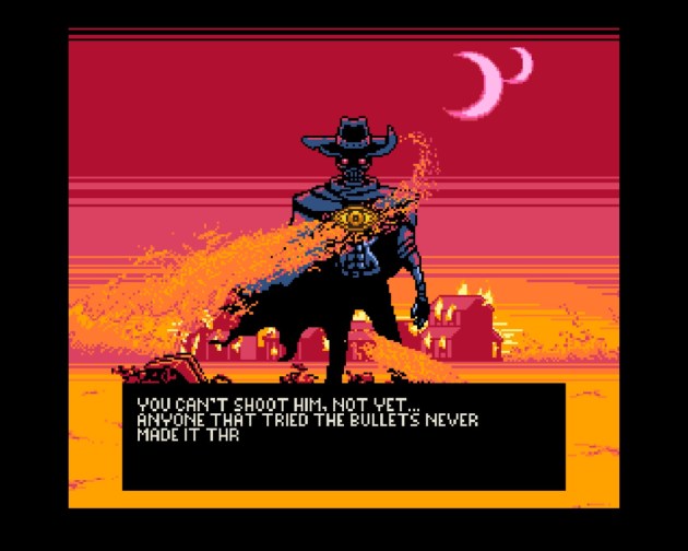 Dead Horizon is a light gun game without the gun. One that should probably take the average player around five minutes to finish. And it’s yet another free-to-play game that, despite a lifespan that would make a mayfly shake their head in pity, is probably worth at least a buck. In short summary.. really short since I don’t want to spend more time writing about this game then it took me to finish it.. you play as a farm girl who inadvertently finds herself as a legendary gunfighter. It has all the trimmings of a pretentious short-subject indie film, including the most cringe-inducing ending to any game I’ve played at Indie Gamer Chick with the possibly exception of the 4th Wall. This is a seriously weird game to review because it doesn’t even give you enough time to like or hate it. It ends before the point where the goo in my brain even begins to register stimuli. I guess I wish there were a few more stages, or something more difficult than lowering my mouse to the bottom of the screen and then raising it back up and clicking. And come to think of it, the game seemed really fickle about what constituted lowering the cursor and raising it back up. But otherwise it’s worth a look. Sorry if that doesn’t sound enthusiastic enough. It’s a five-minute long gunless light gun throwback. What do you want?