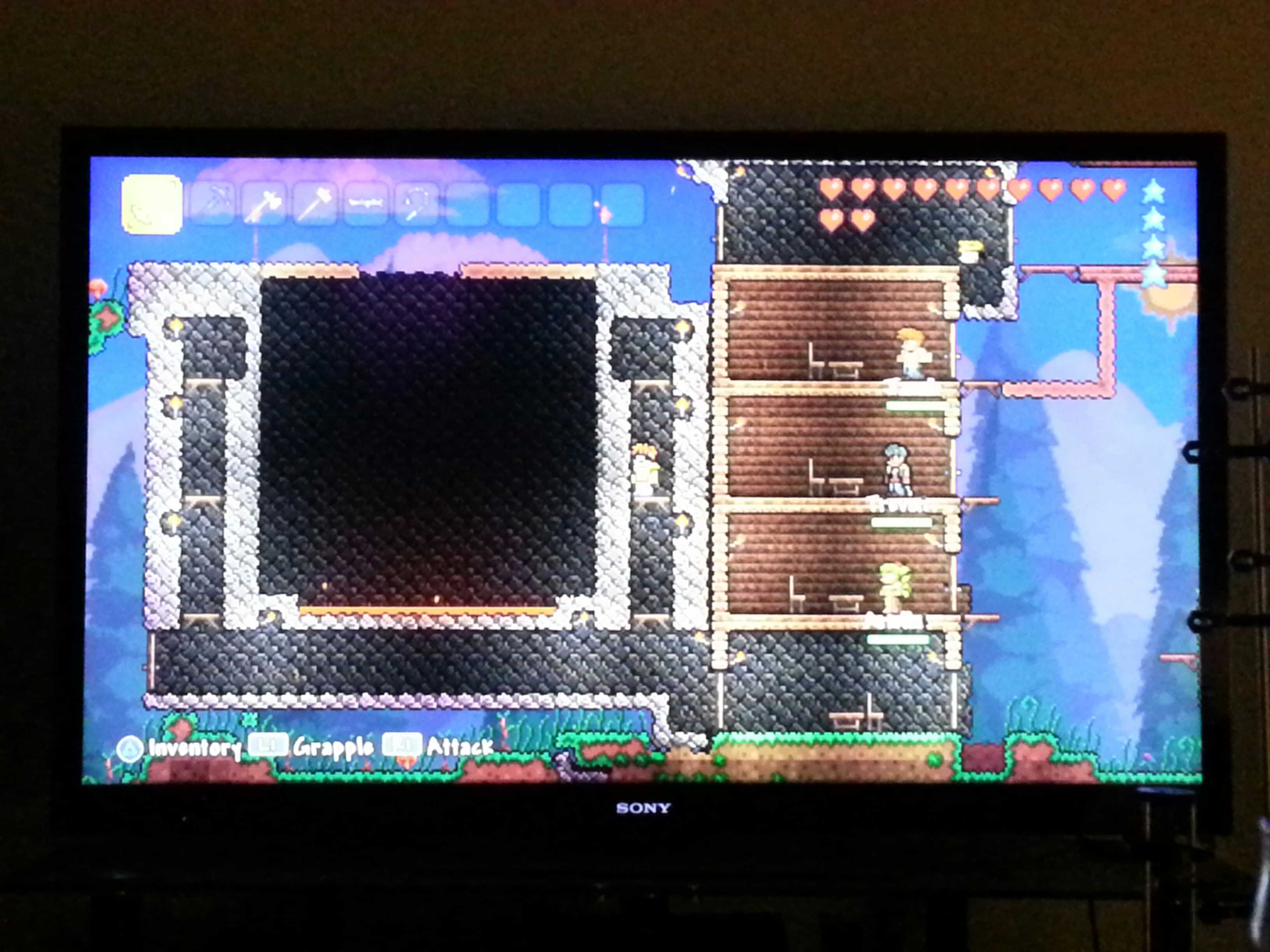 Well, no, actually.  I don’t.  Terraria is too unstable and glitchy in its current state.  Over the course of fifteen hours, a laundry list of bugs popped up, grew, and frustrated the ever-loving shit out of me.  Chief of which was the game had a tendency to crash at the worst possible times.  It happened to me twice, and both times I had lost all the materials that I had harvested.  To say I blew a gasket is an understatement.  Who knew I was capable of crushing a controller with my bare hands?