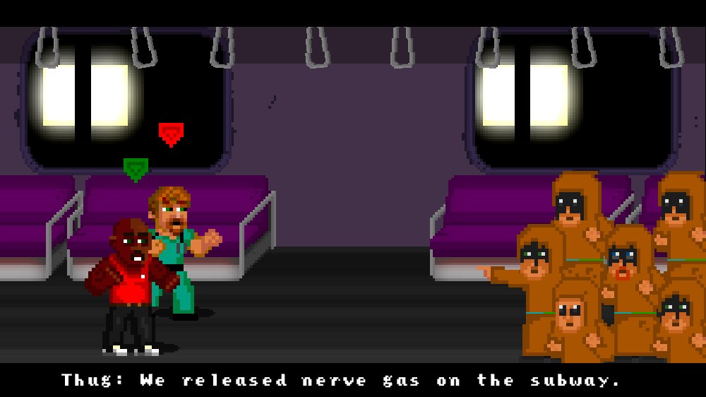 Fist Puncher, God bless it, does its very best to break up the monotony by including different objectives, branching paths, and fairly short levels. There’s also an upgrade system that, in the tradition of Indie Gamer Chick, I attempted to abuse by simply putting all my stats into strength. Didn’t work, because enemies become downright cheap. I encountered a boss that has a murder of crows surround you. If you’re unable to run away, those damn crows will stun lock you and utterly drain your health. At this point, I had maybe two points spent on defense and I didn’t last too long. Of course, that’s my fault and not the developer’s, but I was still pretty peeved at the cheapness of it. Not to mention that some of the levels are clearly designed with four players in mind, like a subway that fills with poison. You have 90 seconds to clear a few waves of bad guys and a boss. Now, by the time I played this stage, I had nearly filled my strength meter to the brim. It didn’t matter. Enemies were spongy as hell, and there was only one of me to finish a stage meant to be played with friends. The amount of enemies probably should have been scaled back a bit to accommodate solo play.