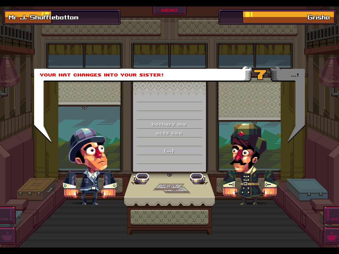 What.. the.. fuck was that? And that did six points of damage to me! Why? That is not an insult. That’s a person having a stroke. And they’re both British it seems like, so, like, your country smells like my face too, idiot! And why six points? The scoring system seems arbitrary and disassociated from the happenings.