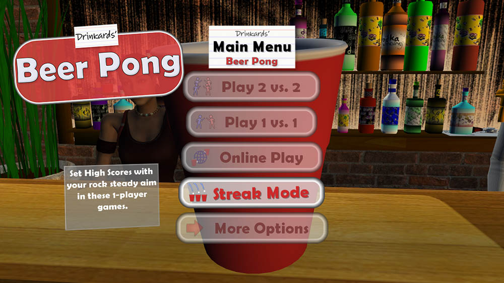To the developer’s credit, they loaded this version of beer pong down with plenty of options and house rules. However, this is wasted on really fidgety aiming mechanics. It’s hard to get a good perspective on depth and angles, even with a cursor that shows the entire trajectory of the ball. This is hammered home by the fact that I was often throwing what looked like a perfect shot into one of the cups, only to watch the ball miss the cups completely and fly off the table. The aiming rocks back and forth, but honestly the whole physics of it seem slightly tipsy.