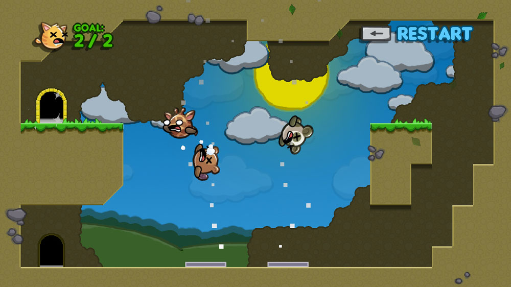 Unfortunately, Abduction Action! Plus is let down by poor controls. Many of the challenges in the game, such flying into birds, requires precision movement, and that’s not really an option. It gets bad when you’re forced to accelerate into objects using the turbo boost. For those watching me, it was probably comical. I tried to splatter a birdie on the UFO, and instead overshot it no less than a dozen times, until it finally flew off the screen. It was maddening. And that’s ultimately why I couldn’t enjoy AA+. It’s a game about lining up to do stuff. Line up to grab a rock and drop it on a jock’s head. Line up to pull someone up in your tractor beam. Line up bullets to turbo-boost through them. That shit is hard to do when the UFO only has two speeds: too fast and suicidally fast.
